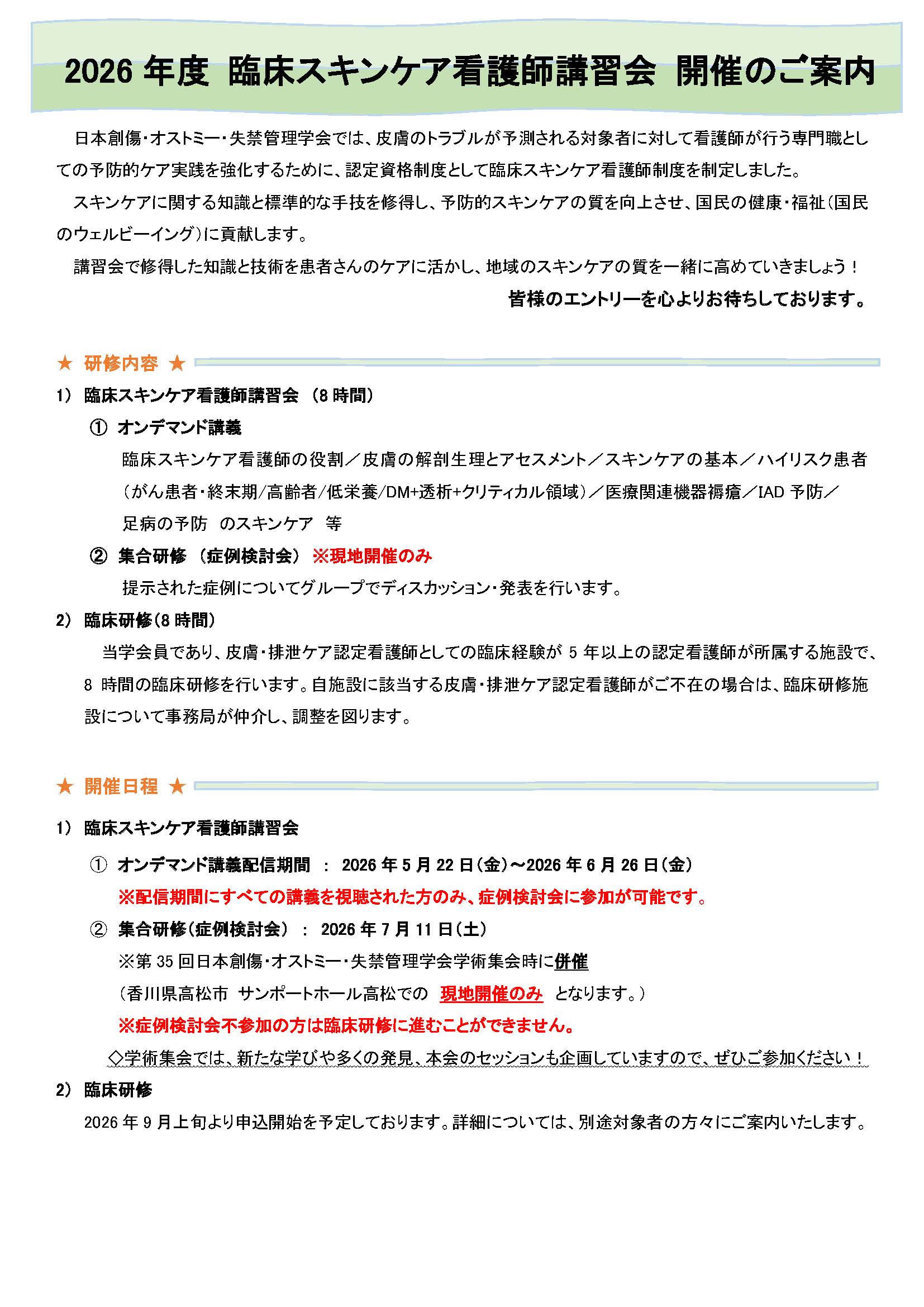 2026年度 臨床スキンケア看護師講習会募集